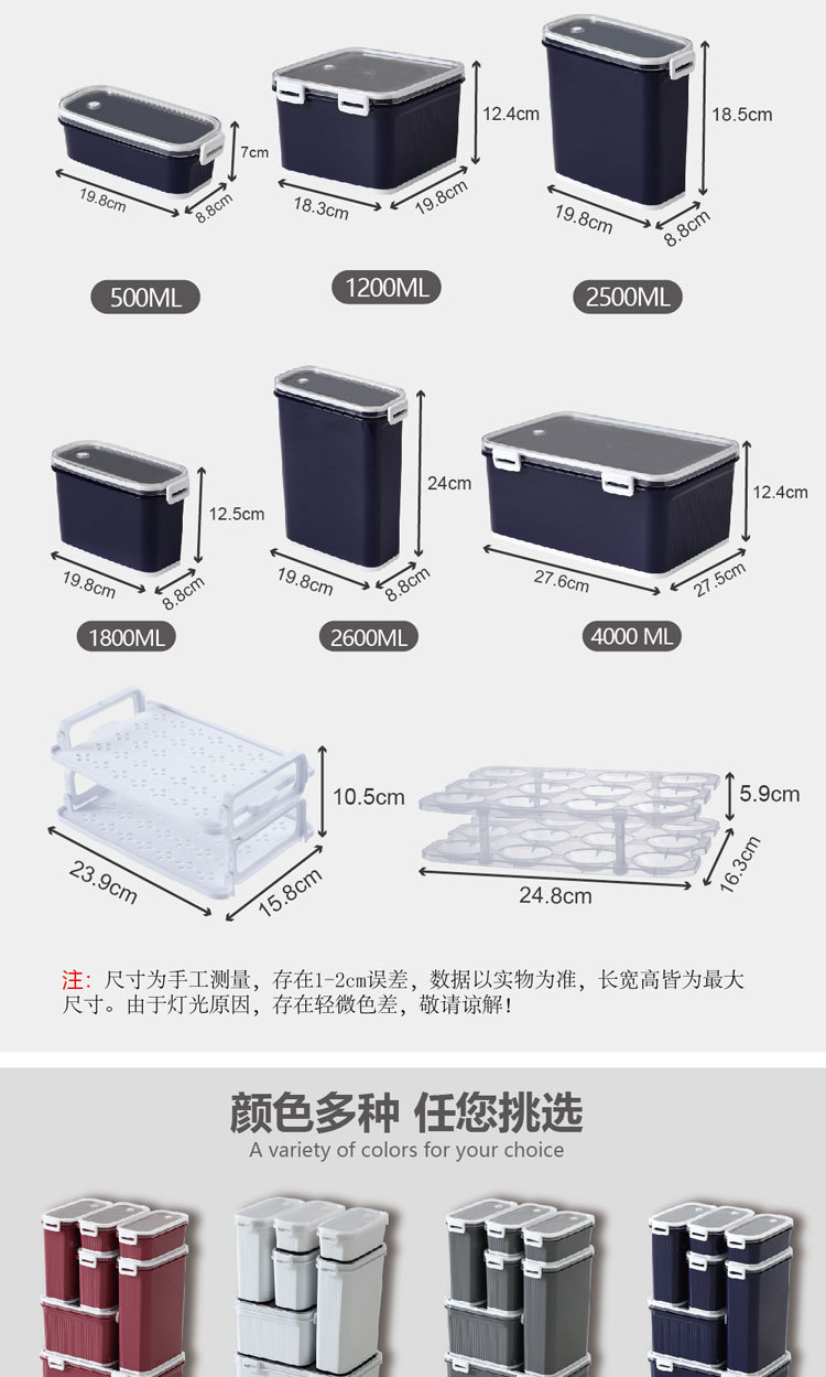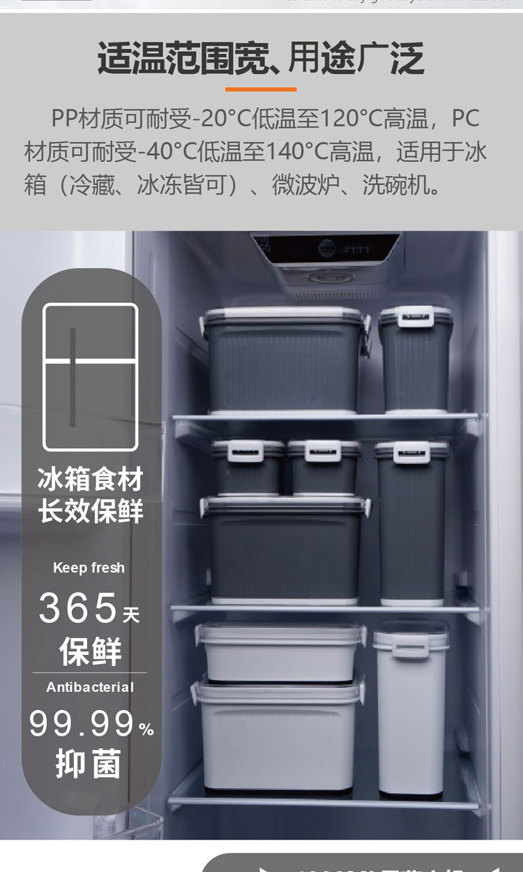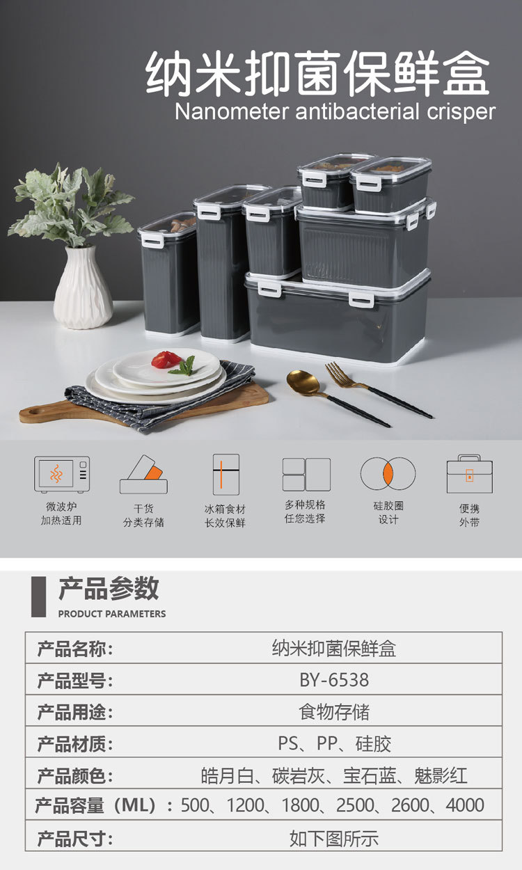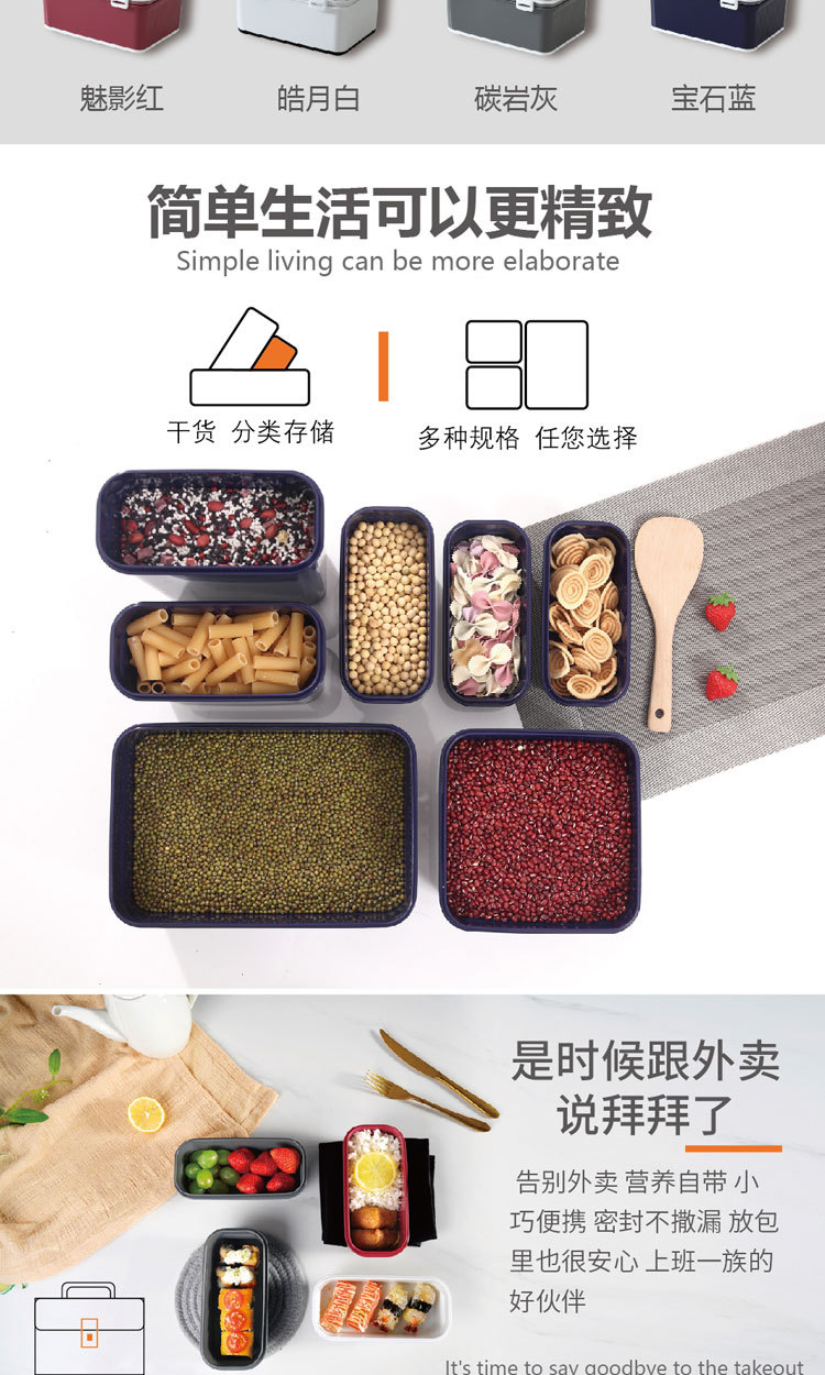 厂家直销 日本365纳米抑菌冰箱密封保鲜盒 七件套便携 塑料便当盒